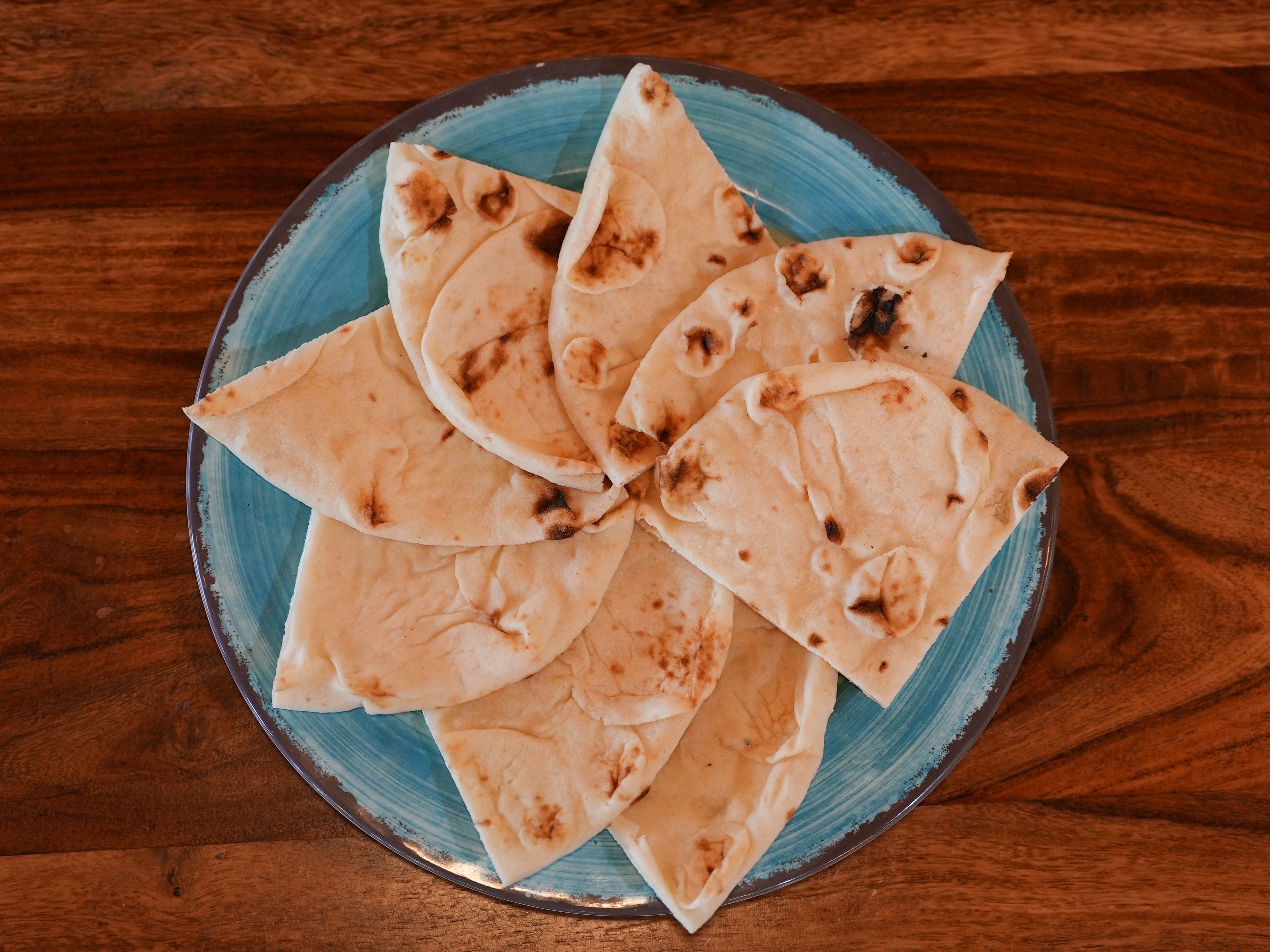 Soft round flatbread served lightly toasted. Vegetarian.