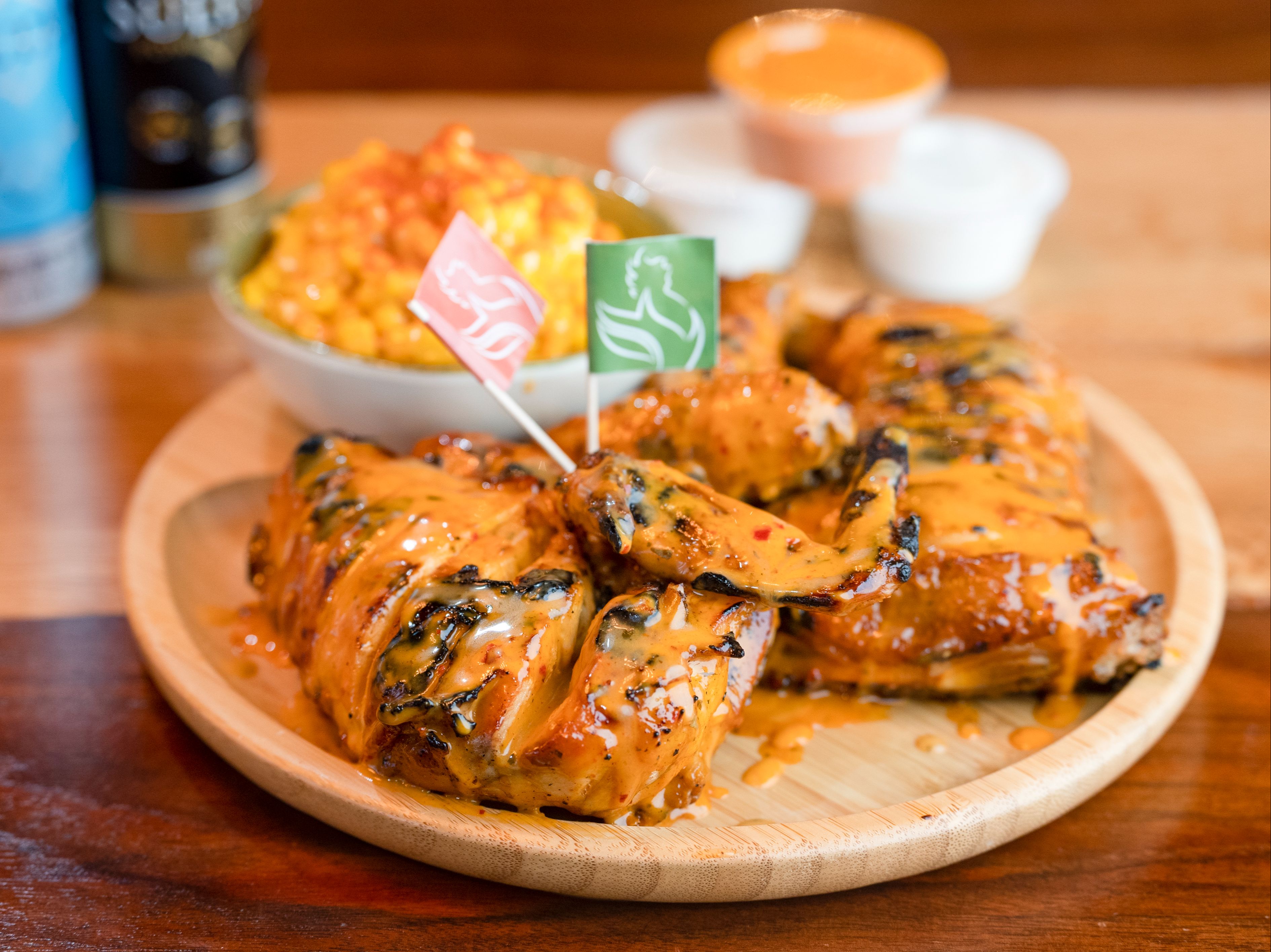 Marinated, slow-cooked then grilled with your choice of Peri sauce. Served with 1 large side.