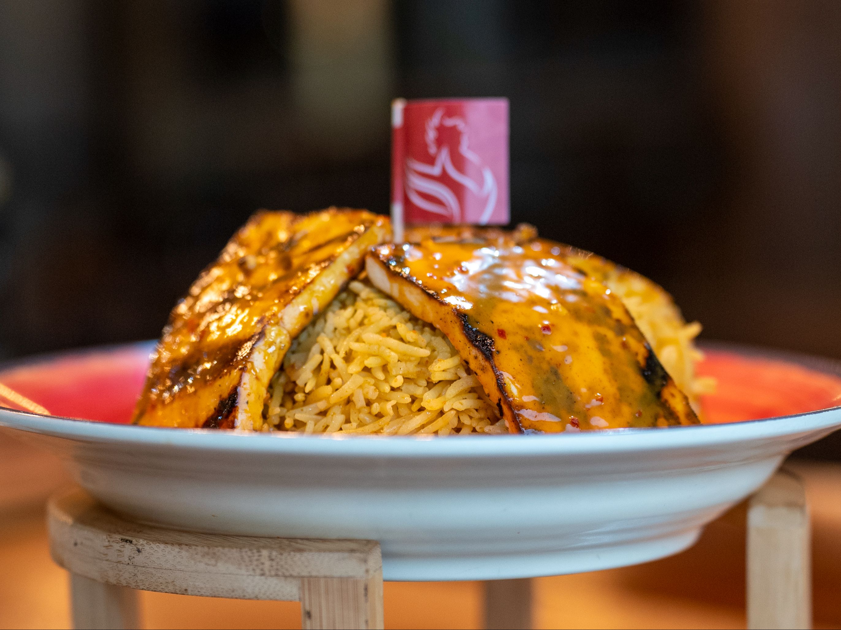 3 juicy flame grilled tenders served on a bed of our signature rice.